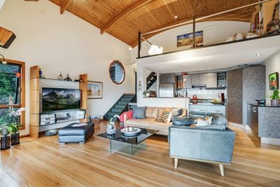 Designed by Byron Bay architects Arkishop and built by renowned Swiss craftsman August Bauer, the contemporary 3-bedroom residence with loft sits in harmony with the surrounding landscape. The layout is simple yet refined, with expansive windows that frame nature from every angle.