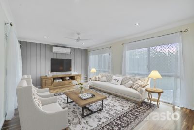 Beautiful spotted gum hardwood floors greet you as you step inside this spacious family home, featuring 4 bedrooms including a large master bedroom with en-suite and dual built-in robes. Two spacious living areas include formal dining and lounge, along with a separate family and meals area enhanced by the comfort of air-conditioning. The kitchen, with stone benchtops, is complete with a 900mm gas cooker, dishwasher, breakfast bar, and ample cupboard and bench space to cater for the growing family. From the kitchen you look out to the outdoor alfresco and usable land giving peace of mind to parents as children play outdoors. Built with large windows and doors, the home brings the outdoors in, allowing natural breezes and light to flow freely.