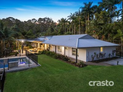 Set amongst lush, beautifully landscaped tropical gardens, this fully modernised single-level home with sought after useable land offers the perfect balance of modern comfort, privacy, and versatility with dual residency potential STCA. Thoughtfully upgraded to include a guest accommodation/potential dual living area, the property now caters effortlessly to extended families, guest accommodation or potential rental income, all within a serene Gold Coast Hinterland setting. Enjoy sweeping views of the surrounding hills and iconic Springbrook Mountain from multiple vantage points throughout the home. A inviting in-ground pool with waterfall and expansive verandas create a tranquil retreat, while generous undercover entertaining areas invite relaxed outdoor living all year round. Just 10 minutes from Robina CBD, private and state schools, the M1, and only 25 minutes to Gold Coast beaches and the airport, this desired location is both peaceful and convenient.