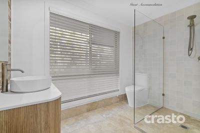 The guest accommodation/teenage retreat offers its own private entrance. A large contemporary living with fireplace and air conditioning. Stunning modern kitchen with stone tops, Bosch appliances, pantry and built in space for laundry appliances. A generous bedroom, beautiful modern bathroom and walk in robe compliment the space and providing flexible options for multigenerational families, teenagers, or guests. Outdoors, the gently terraced 5000 sqm block is very useable, with level lawns and garden zones perfect for children and pets to run and play safely to explore. The land lends itself to multiple options like second residence, large shed, tennis court or hobby farming.